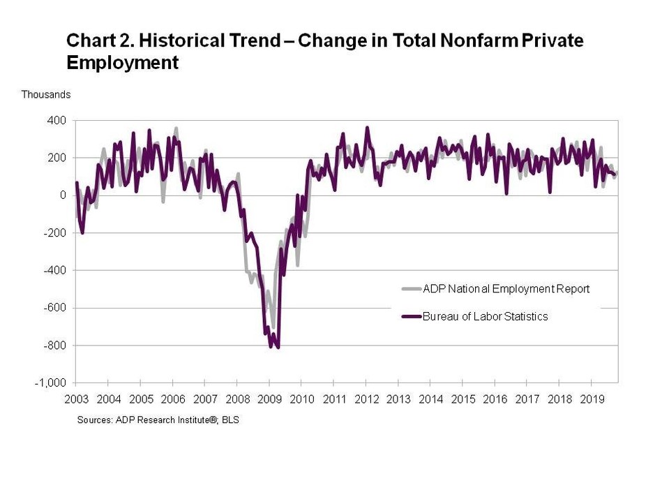 The matched sample used to develop the ADP National Employment Report was derived from ADP payroll data, which represents 411,000 U.S. clients employing nearly 24 million workers in the US The September total of jobs added was revised down from 135,000 to 93,000.