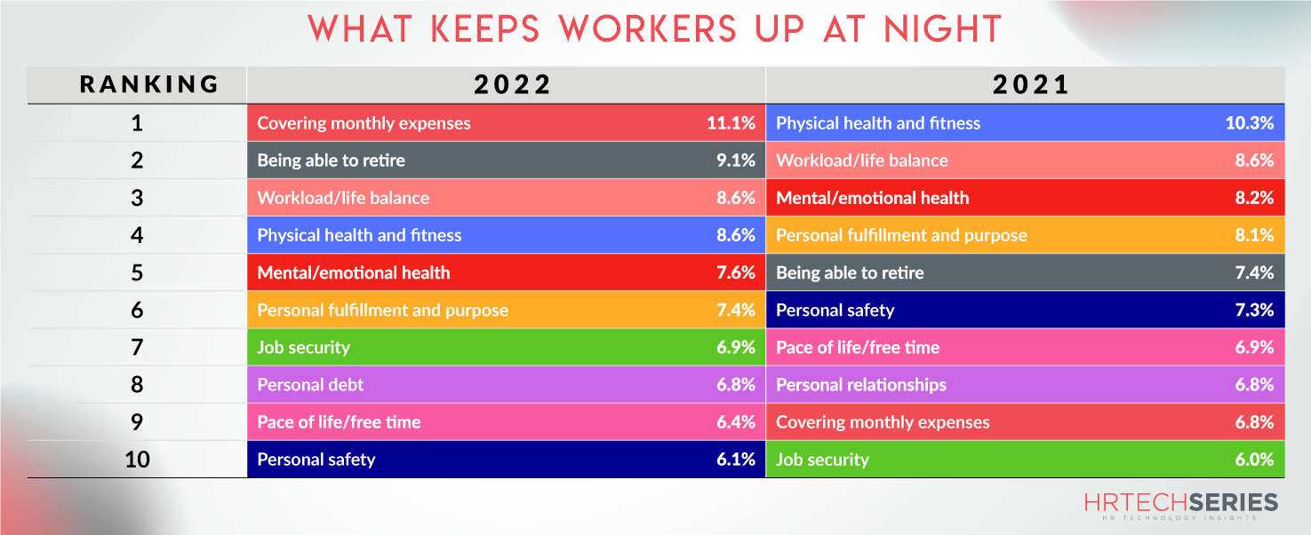 According to a recent Mercer poll of 4,500 workers’ attitudes, income has risen to the top of the list of factors influencing employee happiness at work. Three out of every four workers blame rising inflation and a volatile market for considerably increased financial stress, and despite growing concerns about job security, 36% are considering quitting their employment (up 8 points from last year). When questioned, “What keeps you up at night,” wage problems have surpassed physical health, work-life balance, and even mental and emotional wellness.